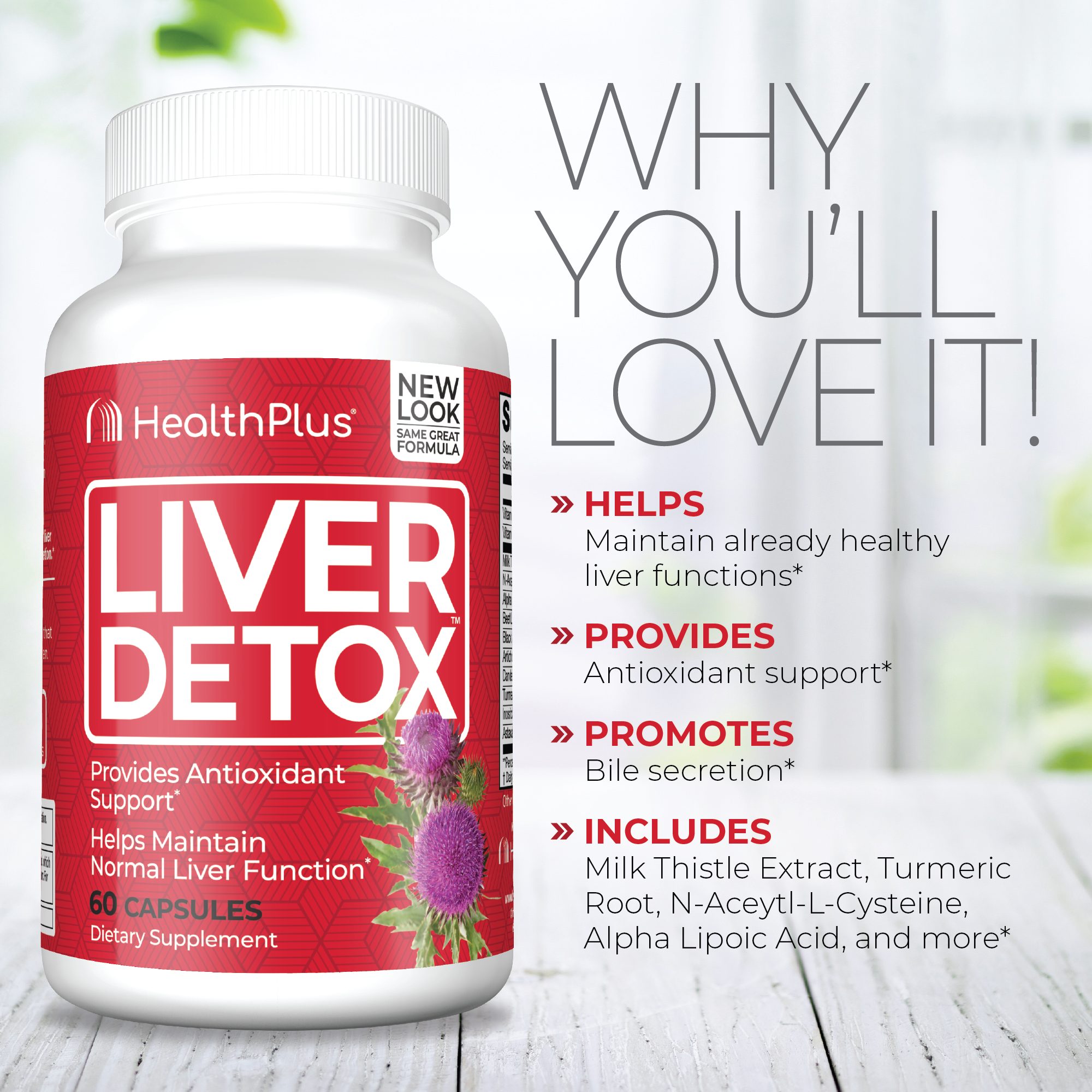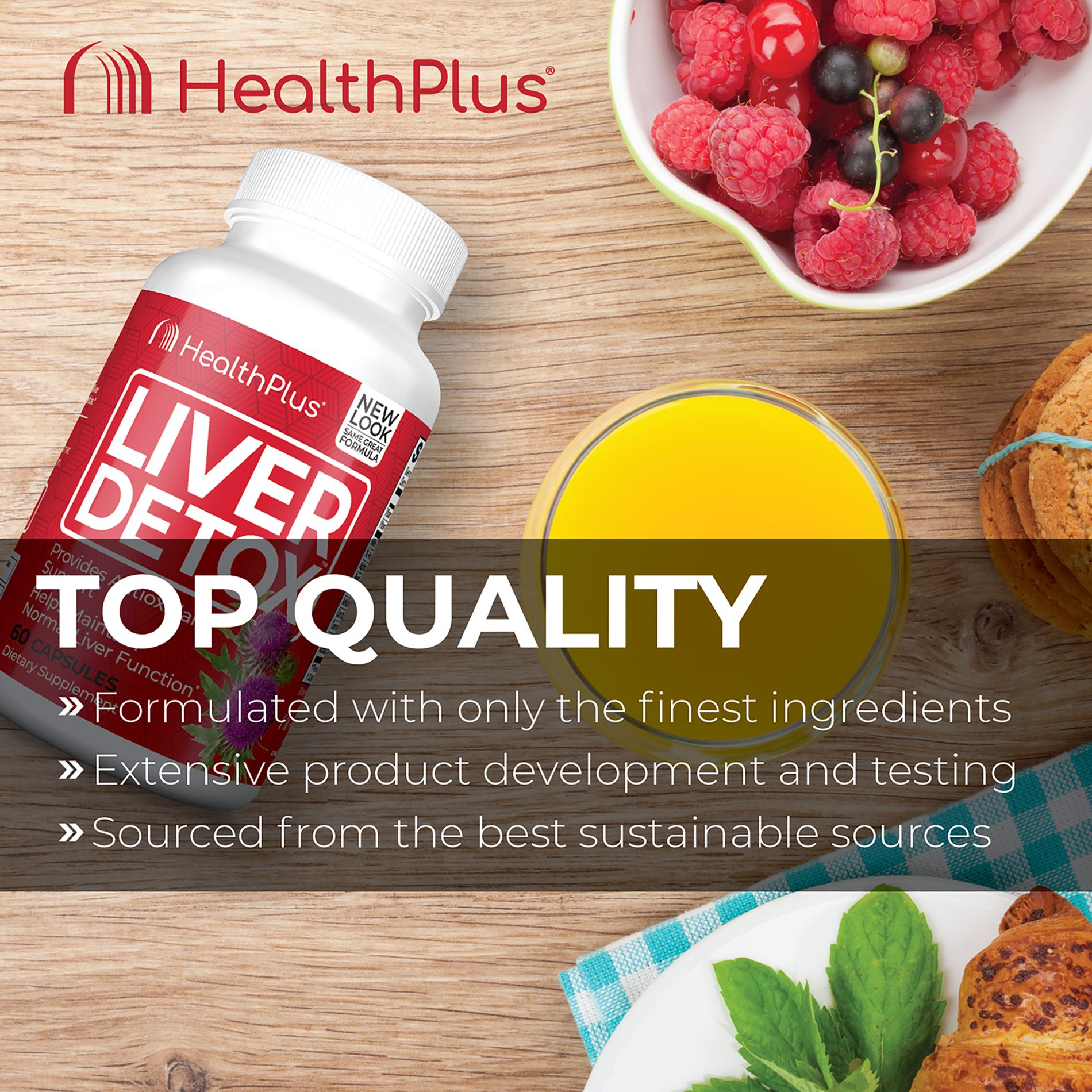 The Health Plus Liver Detox is an herbal blend loaded with support for a healthy functioning liver. This detox is formulated with the powerful herbal combination of Milk Thistle, Artichoke Leaf, Turmeric and more to assist in maintaining a healthy Liver. Liver Detox may help support the liver’s ability to store and regulate glucose as well as encourage the production of bile. Astaxanthin and Beet Leaf are added for antioxidant support to help protect the liver from free radical damage. This bottle includes 60 capsules – 30 servings. For more than 30 years, Health Plus has been committed to developing and manufacturing the highest quality supplements available. To this day, they remain committed to their roots by offering a full range of innovative products that support healthier lifestyles and overall wellness. After all, a healthy outside starts from the inside, so all Health Plus products are formulated using raw, high-quality ingredients in their many varieties of healthful cleanses, fibers, flavors, recipes and more. Inspired by purpose and driven by passion, Health Plus is raising the bar to a gateway for better health.