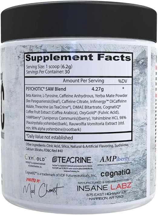 - WANNA PLAY A GAME? Psychotic SAW is the most INSANE preworkout ever made by the Mad Chemist and his team at Insane Labz. They’ve packed the formula FULL of ingredients that work together to give you everything you need to KILL it in the gym!